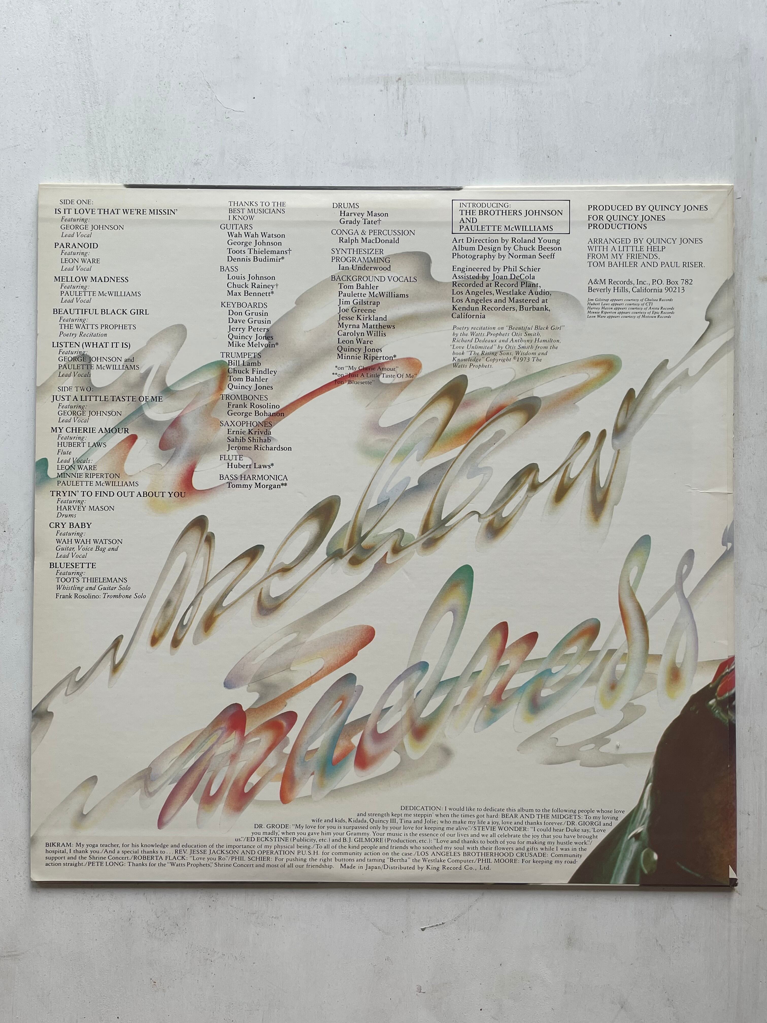 音楽プロデューサーの巨匠、クインシー・ジョーンズが放った70年代屈指の傑作『Mellow Madness』のオリジナル盤です!